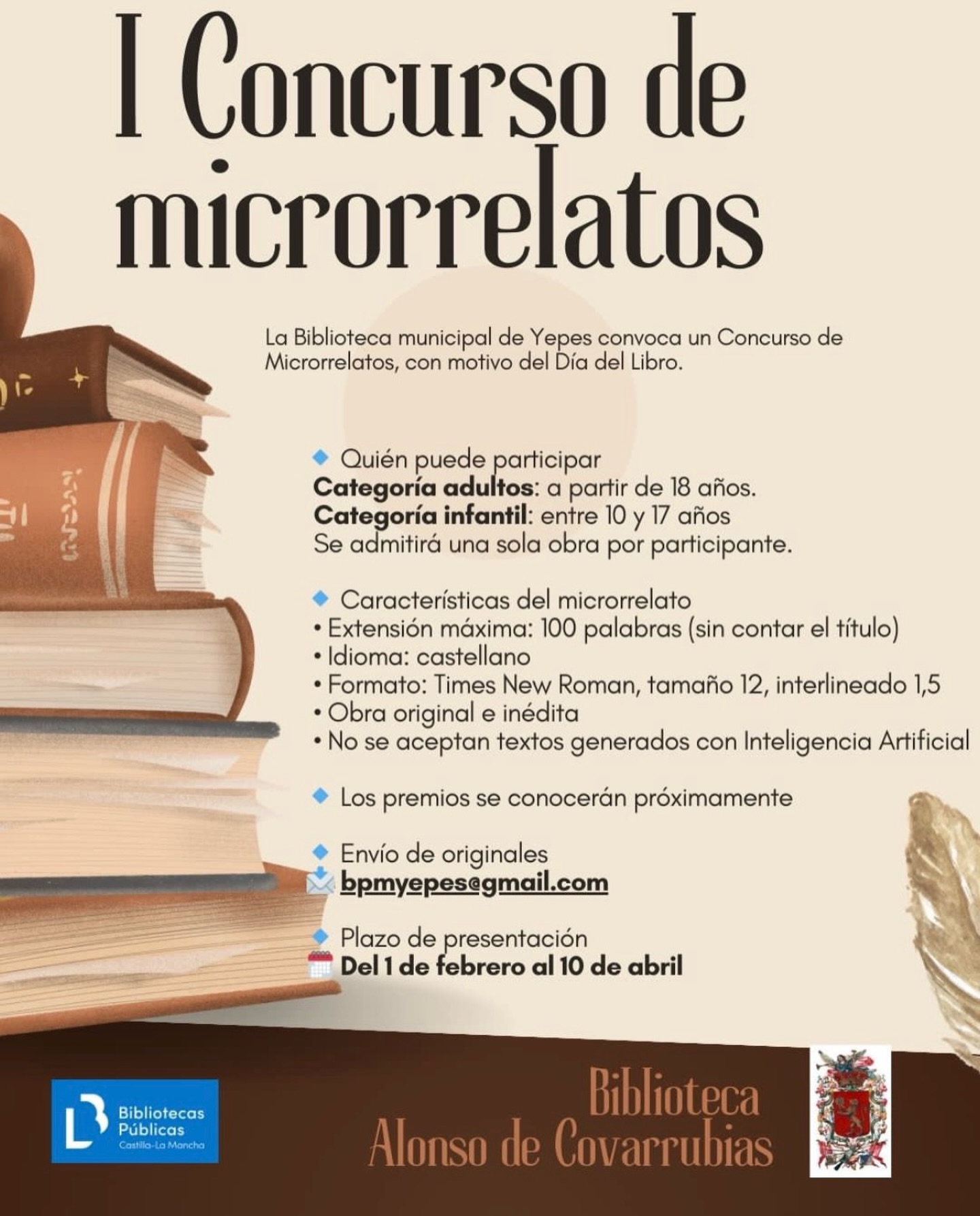 La Biblioteca municipal de Yepes convoca un Concurso de Microrrelatos, con motivo del Día del Libro.