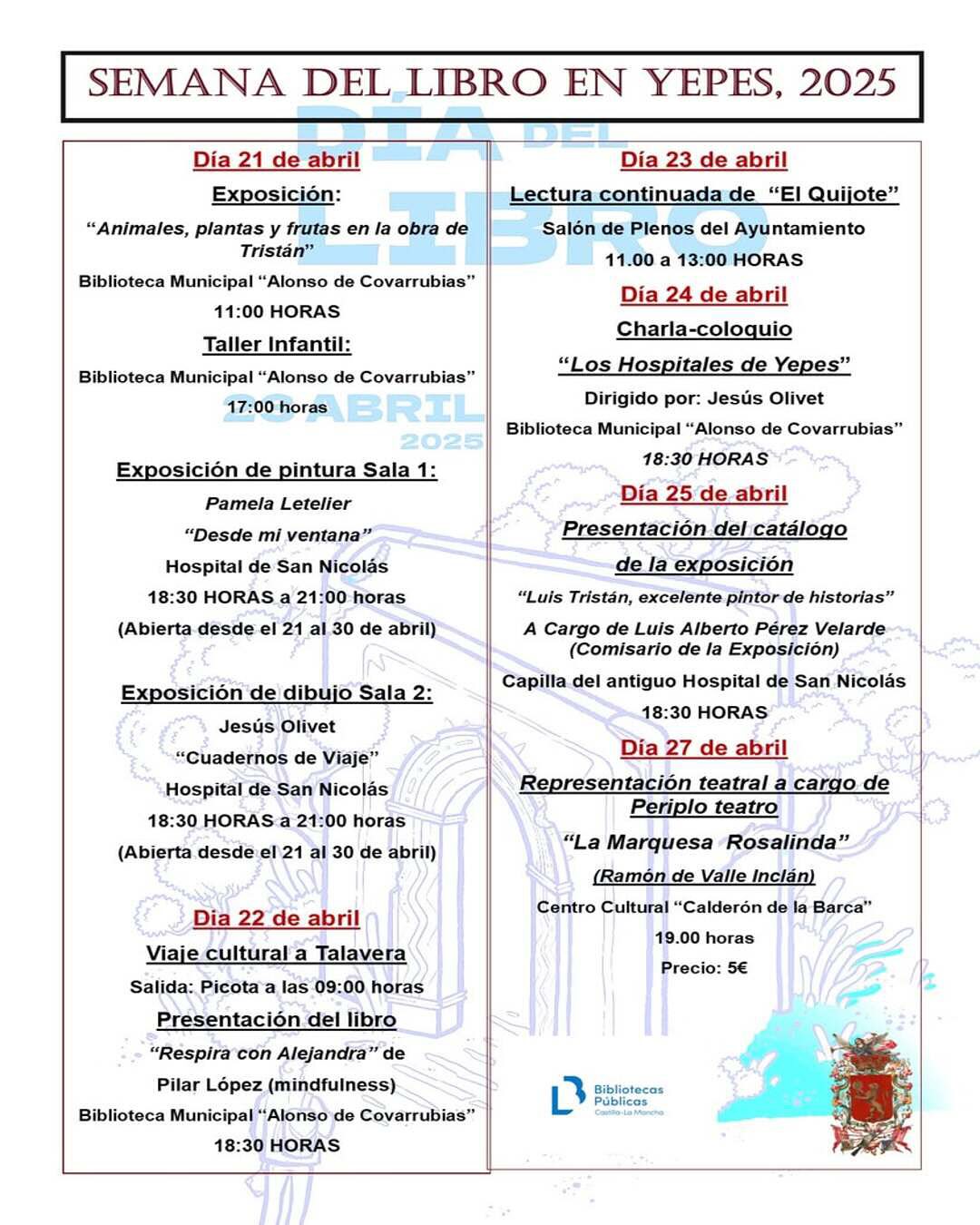 Del 21 al 27 de abril celebramos la cultura en Yepes con la Semana del libro 2025:
